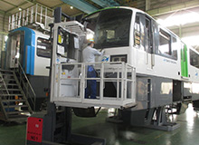 東京モノレール車両の全般検査、重要部検査、月検査、車両部品検修、タイヤ交換、車体外板塗装、改造工事の業務を行っています。